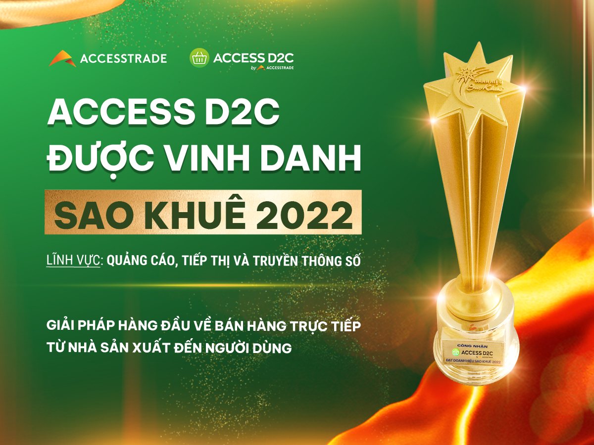 ACCESS D2C được Hội đồng Ban giám khảo Sao Khuê 2022 đánh giá cao ở những lợi ích mà nền tảng này mang lại cho doanh nghiệp. Cụ thể giúp doanh nghiệp tăng trưởng vượt bậc nhờ hệ thống 1,5 triệu cộng tác viên (CTV) hiện hữu; chỉ chi trả trên mỗi đơn hàng thành công nên giảm rủi ro quảng cáo không ra đơn; Phân phối không qua trung gian nên giá đến tay người dùng rẻ nhất, cho lợi nhuận tối ưu.