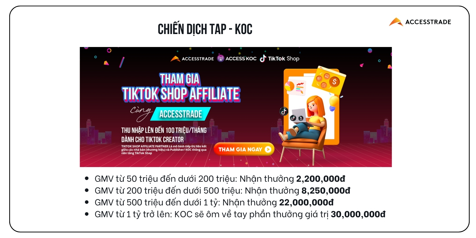 Cơ hội nhận thưởng lên đến 30 triệu đồng với TAP, chương trình dành riêng cho KOC của ACCESSTRADE!