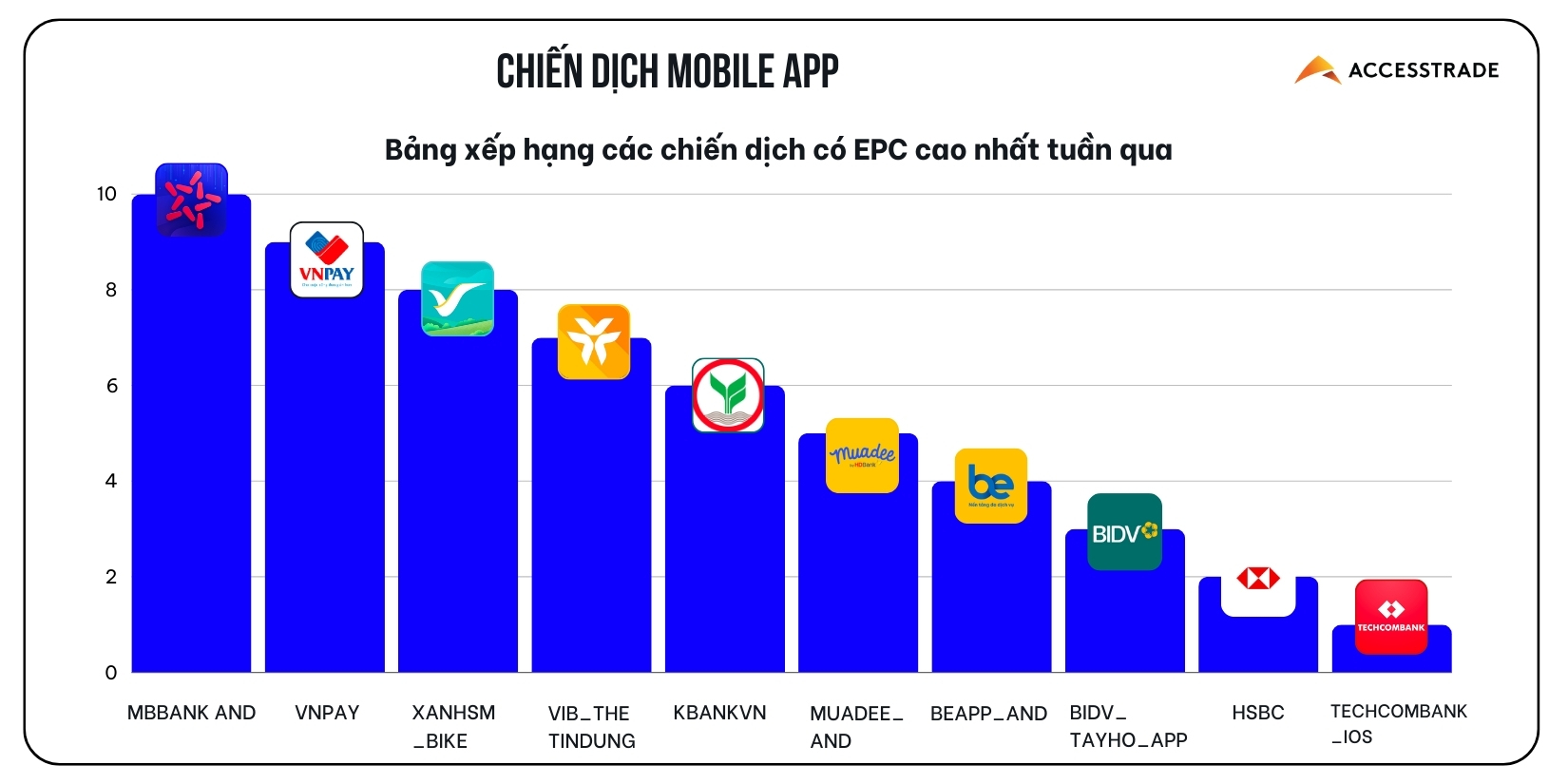 Bảng xếp hạng chỉ số EPC và doanh thu cao nhất tuần của các chiến dịch