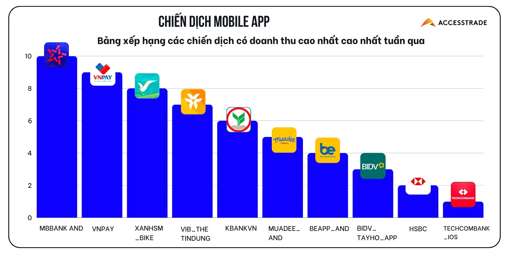 Chiến dịch Mobile App tuần này vẫn đang hừng hực với chương trình Truy tìm chủ nhận 2 chỉ vàng JSC của chiến dịch VNPAY. Góp thêm sức nóng, chiến dịch Data Viettel tăng hoa hồng lên mức siêu đỉnh cao, chiếm top 1 bảng xếp hạng