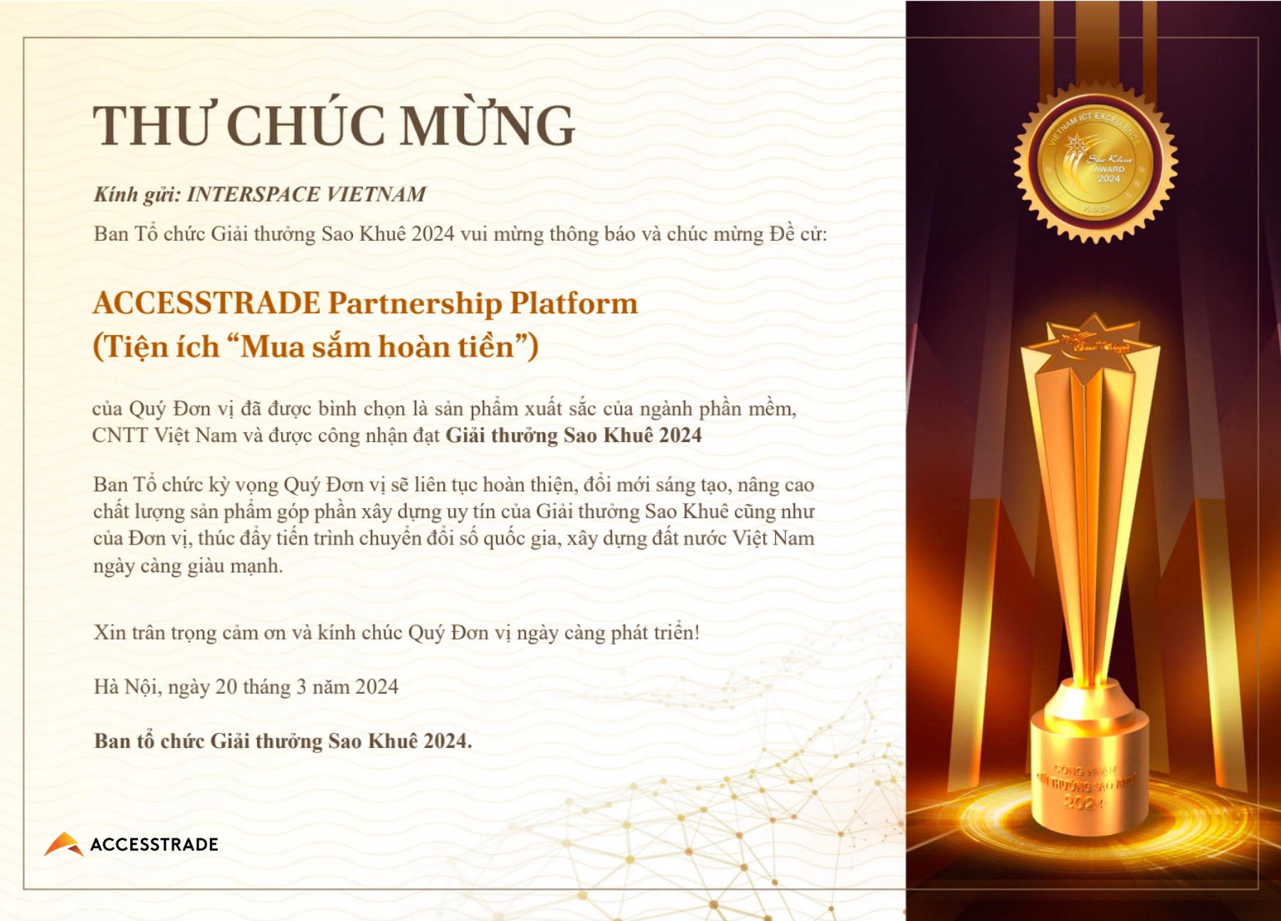 ACCESSTRADE PARTNERSHIP PLATFORM XUẤT SẮC ĐẠT GIẢI THƯỞNG SAO KHUÊ 2024