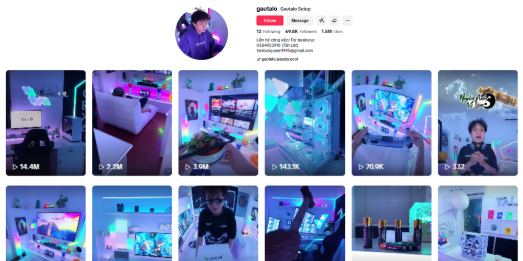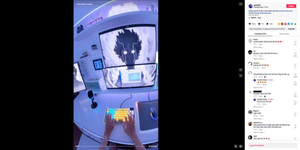 Gautalo Setup cũng là ví dụ điển hình của việc hiểu thuật toán nhưng không “lạm dụng thuật toán”. Video của anh luôn có nhịp dựng nhanh, ánh sáng đẹp, chuyển cảnh mượt và nội dung rõ ràng ngay từ giây đầu. Hashtag được chọn đúng tệp như #LazCreators, #LazMall, #setup hoặc #gamingsetup giúp video đi thẳng vào cộng đồng mê công nghệ – nơi khả năng lan tỏa là cực kỳ lớn.