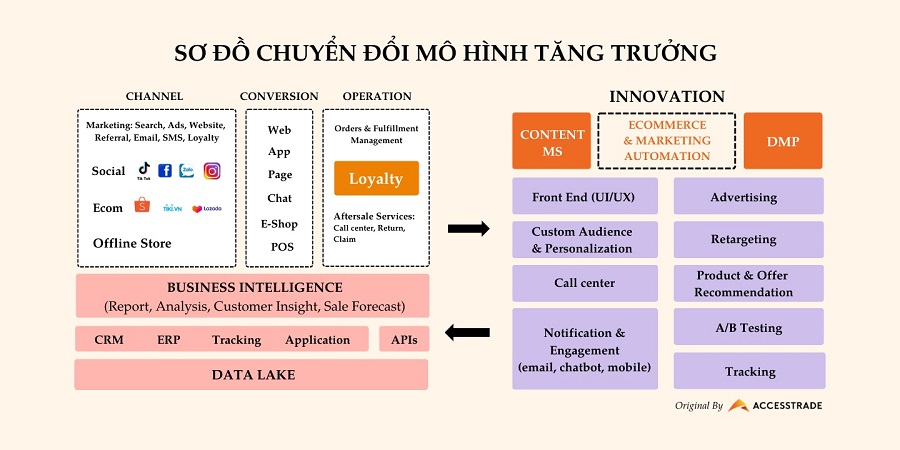 Bằng việc đã triển khai nhiều chiến dịch thành công và am hiểu về Martech nên có trong từng bước của mô hình vận hành và phát triển kinh doanh của các doanh nghiệp, ACCESSTRADE xây dựng công thức thành công trên mặt trận online một cách đầy đủ nhưng tinh gọn nhất. Công thức gồm sơ đồ 3 khối (tiếp cận, marketing, quản lý dữ liệu) nối liền nhau liên tục. Tại thời điểm lần đầu chia sẻ tại một sự kiện Digital Marketing hồi tháng 5/2023, công thức này đã dành được nhiều sự quan tâm của các chuyên gia và cấp quản lý tại các doanh nghiệp.