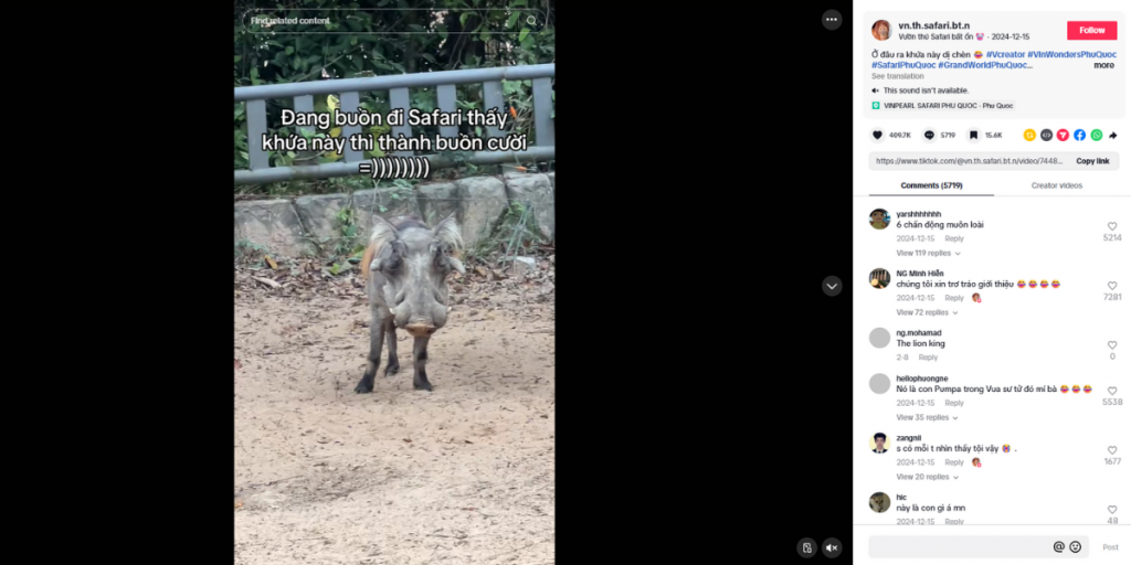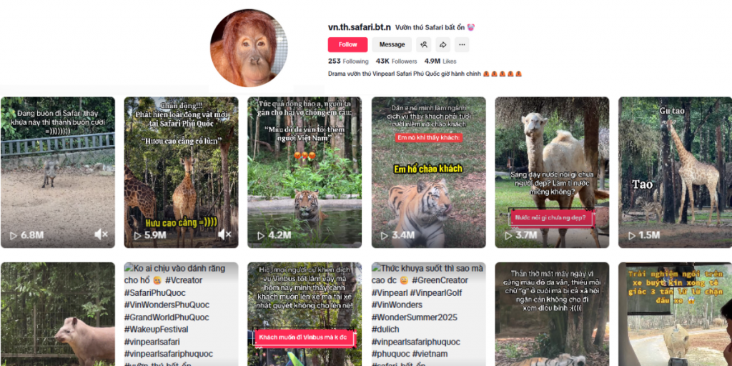 Tuy nhiên, kênh TikTok “Vườn thú Safari bất ổn” (@vn.th.safari.bt.n) đã chứng minh điều ngược lại. Với hơn 4,9 triệu lượt thích và hàng loạt video triệu view, kênh này không chỉ giữ chân người xem mà còn tạo ra dòng tiền thụ động hàng chục triệu đồng mỗi tháng nhờ một hướng đi thông minh cùng ACCESSTRADE.