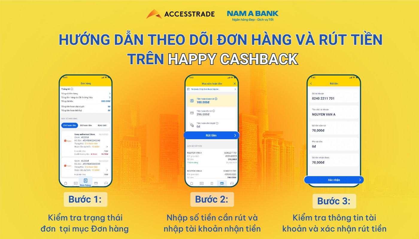Khách hàng có thể thực hiện thao tác rút tiền hoàn về tài khoản Nam A Bank ngay sau khi đơn hàng được trả trạng thái “Đã hoàn tiền” và có số dư “Tiền hoàn được rút” tối thiểu từ 10.000 đồng trở lên.