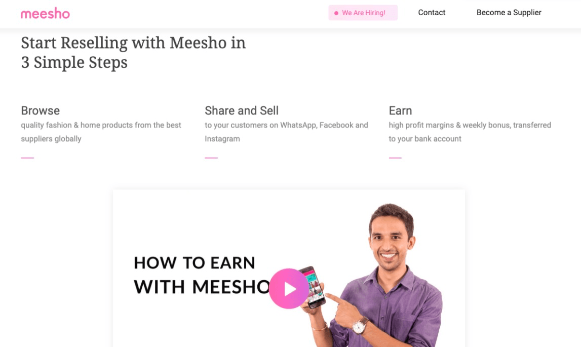 Meesho, một sàn giao dịch đại lý ở Ấn Độ, cho phép khách hàng của mình tạo ra các doanh nghiệp nhỏ bằng cách bán sản phẩm / hàng hóa cho bạn bè và gia đình của họ qua Whatsapp và các kênh nhắn tin khác.