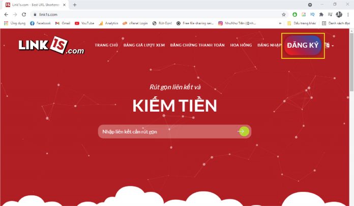 Bước 1: Chọn trang web để rút gọn link và đăng ký tài khoản.