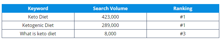 Tuyệt! Đây chính xác là một website về Keto Diet, tức đối thủ của mình. Mình sẽ cho tên này vào danh sách.