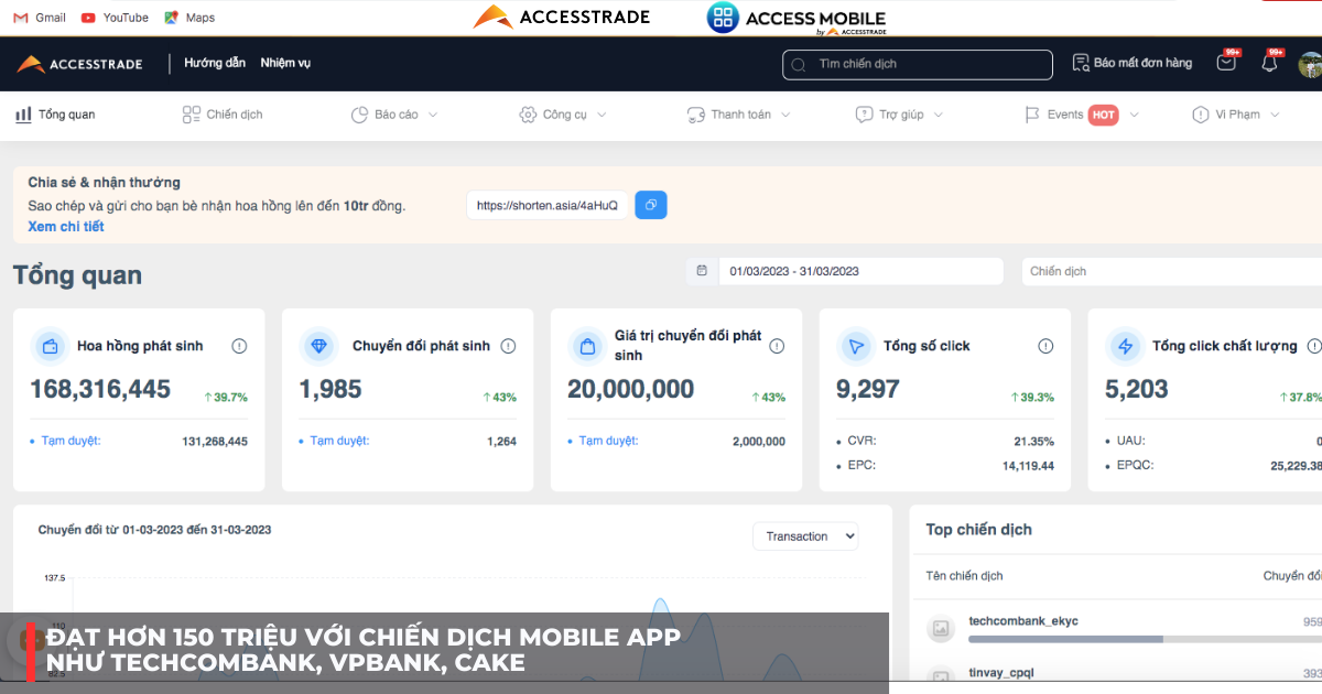 Theo em đánh giá, các chiến dịch mobile app dễ thực hiện, và tiếp cận khách hàng mới, vì hiện tại người Việt Nam ngày càng dành nhiều thời gian sử dụng điện thoại di động và ứng dụng hơn so với trước đây. Quan trọng hơn hết, Mobile App có mức hoa hồng affiliate cao hơn các ngành khác tại ACCESSTRADE.