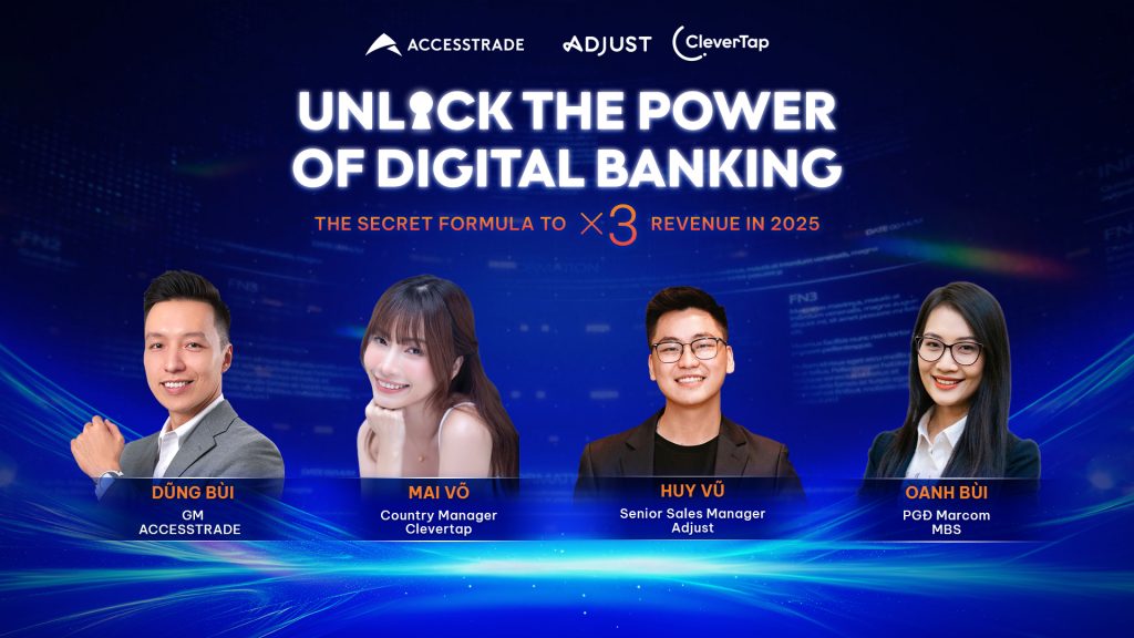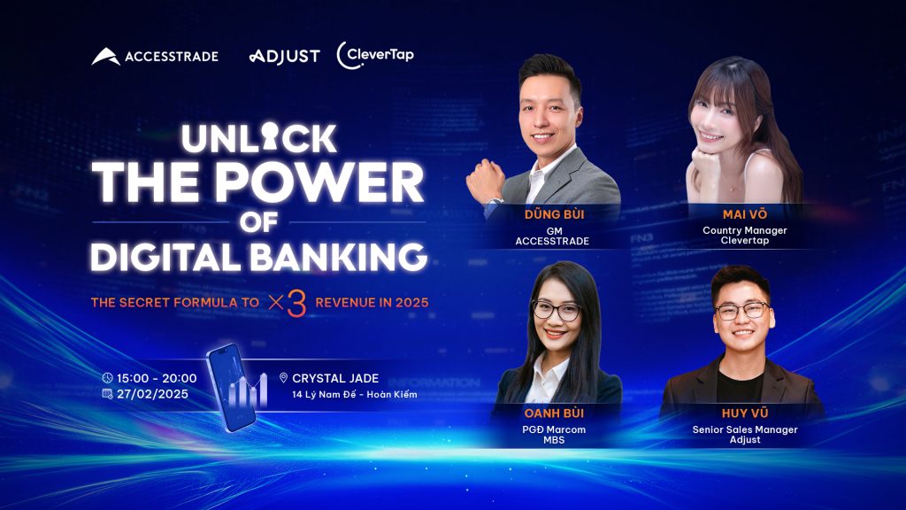 Với mục tiêu giải mã công thức tăng trưởng X3 người dùng ứng dụng ngân hàng, ACCESSTRADE kết hợp cùng Adjust và CleverTap cho ra mắt sự kiện “Unlock the Power of Digital Banking: The Secret Formula to X3 App User Growth” sẽ diễn ra vào ngày 27/2/2025 tại Crystal Jade, Hà Nội. Đây là cơ hội để các ngân hàng, nhà quảng cáo và chuyên gia tiếp thị cập nhật xu hướng, nâng cao hiệu suất marketing, và tối ưu chiến lược tăng trưởng trong thời đại chuyển đổi số.