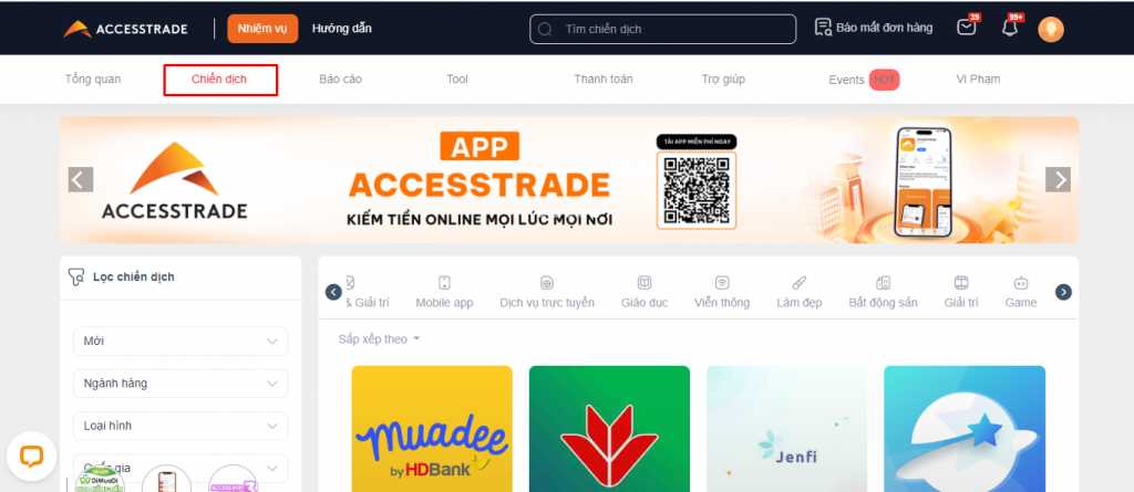 Các chiến dịch kiếm tiền tại ACCESSTRADE