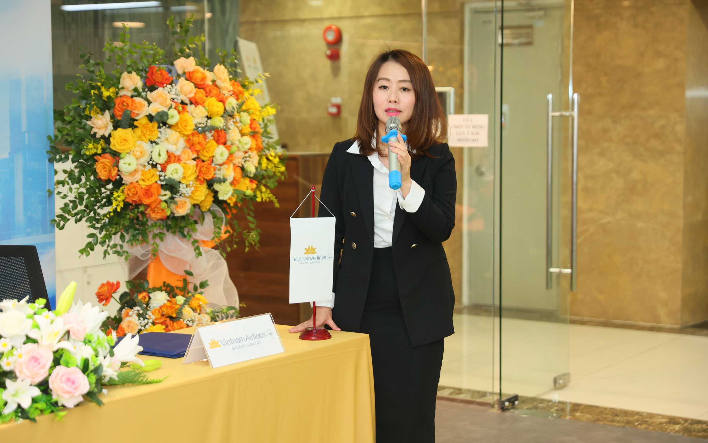 Bà Nguyễn Hồng Nga – Phó trưởng Ban Tiếp thị số Vietnam Airlines chia sẻ tại buổi lễ