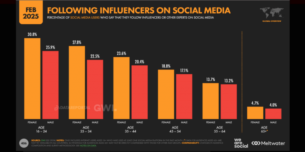 Trong đó, Instagram đứng đầu danh sách với 62,3% người dùng trưởng thành tìm kiếm thông tin về thương hiệu trên nền tảng này. Ngay sau là Facebook với 52,5% và TikTok đứng thứ ba với 51,5%. Ngoài ra, 22% người dùng mạng xã hội chủ động theo dõi influencer hoặc chuyên gia trên các nền tảng, con số này tăng lên 30,8% đối với nhóm nữ giới từ 16-24 tuổi.