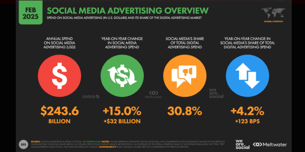 Đặc biệt, quảng cáo trên mạng xã hội tiếp tục giữ vững vị thế dẫn đầu với 243 tỷ USD chi tiêu, tăng trưởng 15% so với năm trước. Mảng Influencer Marketing cũng không ngừng phát triển, ghi nhận mức tăng trưởng 14% mỗi năm và đạt 35 tỷ USD.